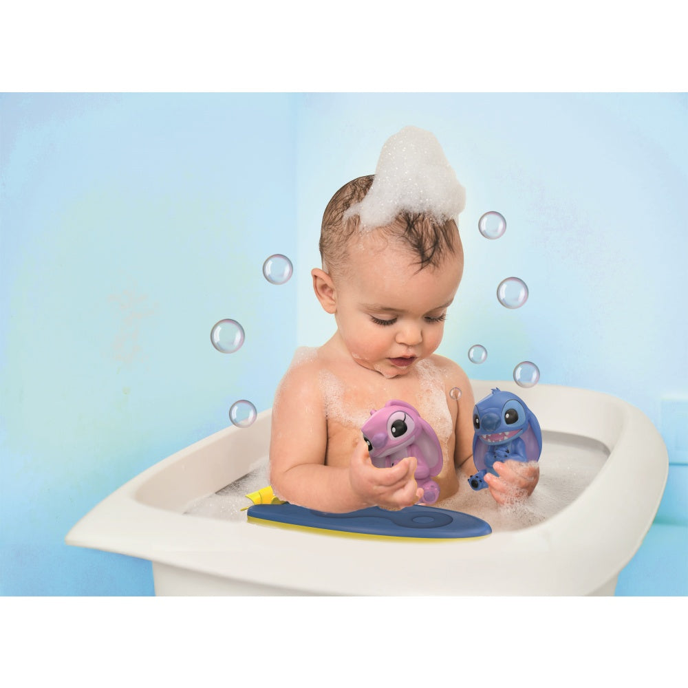 Seturi plutitoare de baie cu Stitch si Angel pe o placa de surf. Personaje moi, durabile, usor de manevrat, cu o elice rotativa pentru un efect distractiv al apei. Proiectate fara gauri pentru a preveni mucegaiul si pentru a fi usor de curatat. Acest set, Stitch si Angel pe o placa de surf, face din ora baii o experienta distractiva si imaginativa. Indragitele personaje Disney, cu formele lor unice si culorile vii, capteaza atentia copiilor si le starnesc imaginatia. Usor de tinut in mana si moi la atingere, sunt companionii perfecti pentru manutele mici. Elicea se roteste sub robinet, creand un efect jucaus al apei. Magia Disney ajunge in baie in fiecare zi. Un set emblematic pentru a transforma ora baii intr-un moment asteptat cu nerabdare si captivant.