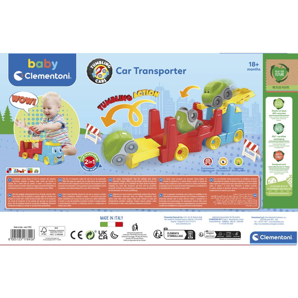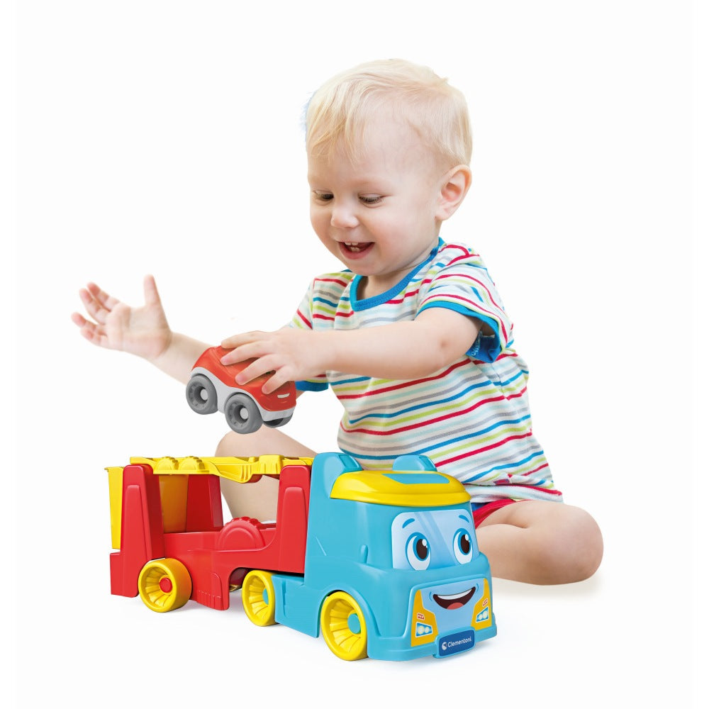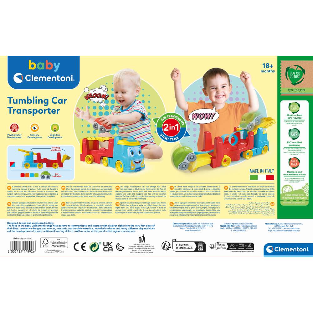Camionul extrem de colorat Baby Clementoni are o semiremorca pentru transportul Masinutelor de acrobatii! Semiremorca devine o pista unde masinuta rulanta inclusa poate intrece si se poate roti, in timp ce se rostogoleste si face tumbe amuzante care starnesc curiozitatea copilului. Jucaria stimuleaza abilitatile manuale si imaginatia copilului, care poate folosi camionul pentru a recrea decoruri din lumea reala. Jucarie extensibila. Descopera toate culorile Masinutelor Tumbling! Play For Future: produs fabricat din material 100% reciclat.